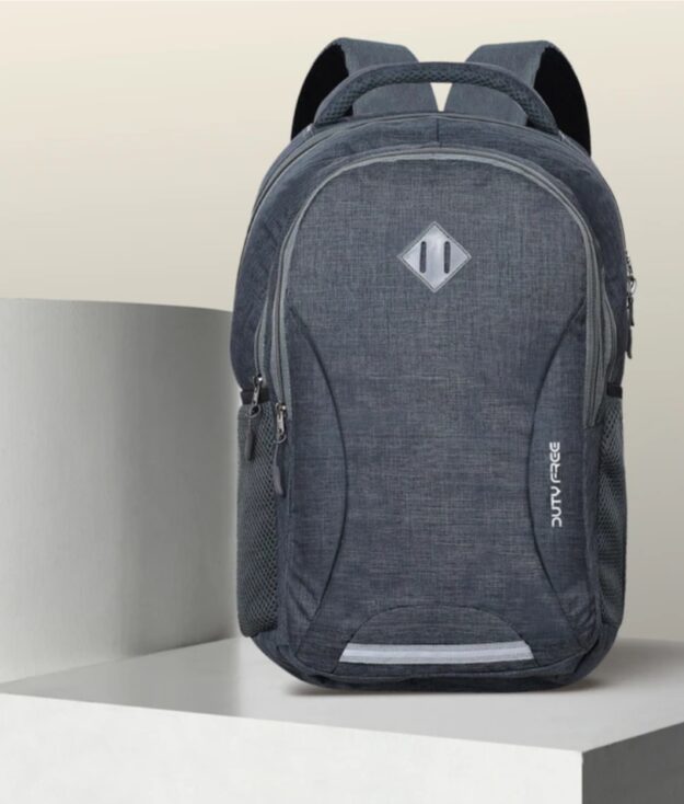 Keywords for SEO: grey backpack, travel backpack, laptop backpack 15.6 inch, duty free backpack, school bag, office backpack, lightweight backpack for men and women, multipurpose backpack.