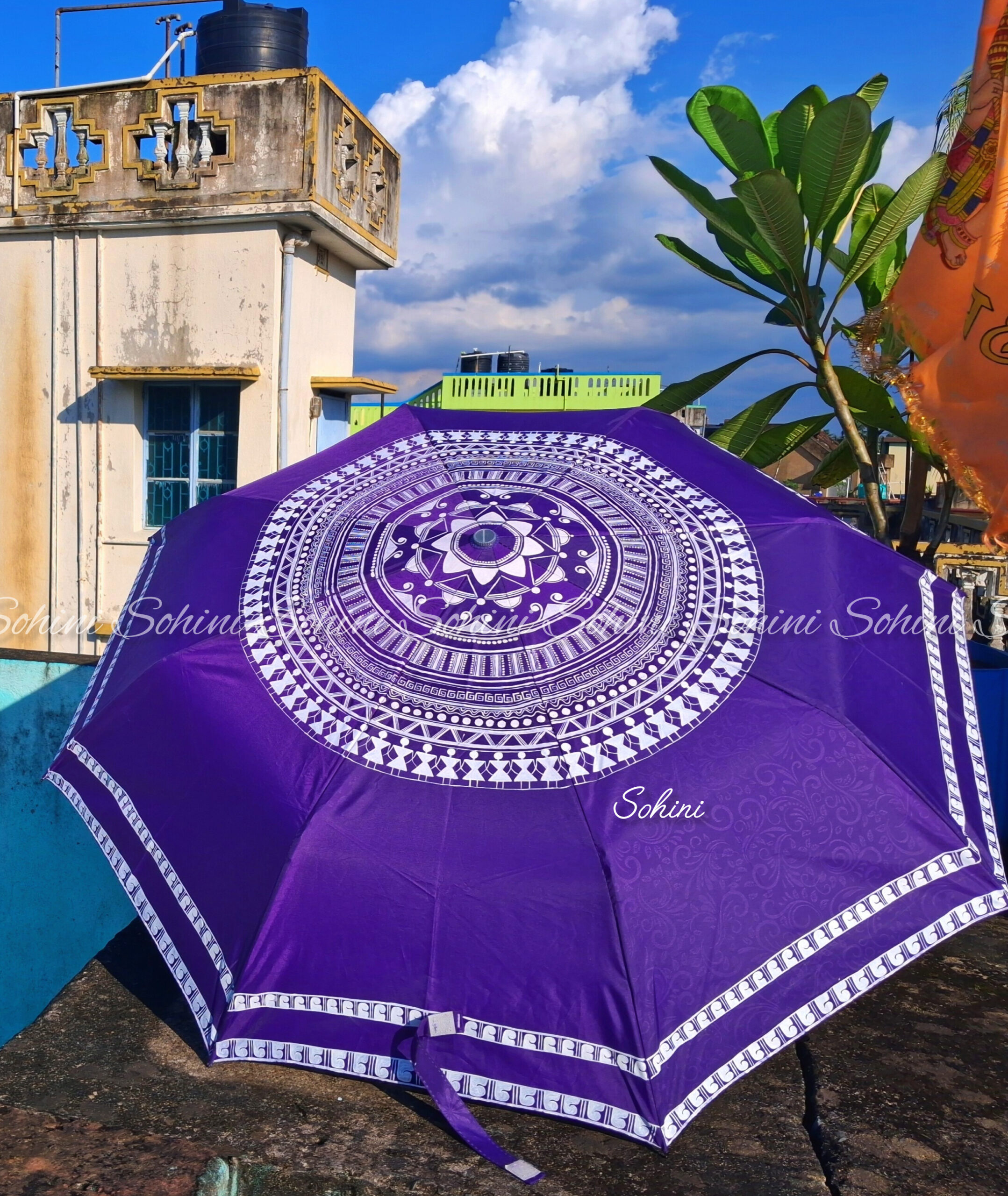 Key points: Purple Umbrella, Mandala Print Umbrella, Designer Umbrella for Women, Stylish Umbrella for Rain, UV Protection Umbrella, Travel Umbrella, Handmade Printed Umbrella, Monsoon Essentials